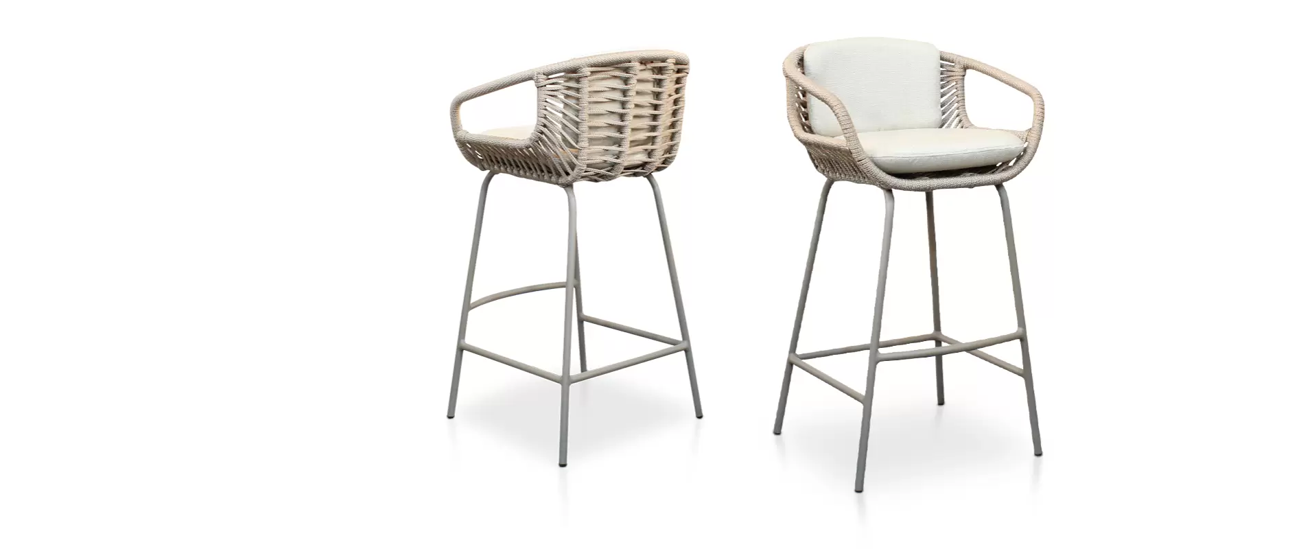 A Banqueta em Alumínio e Corda Náutica se destaca pelo seu design inovador, onde a lateral e o encosto são habilidosamente confeccionados em corda náutica, criando uma estética única e proporcionando leveza visual ao ambiente.