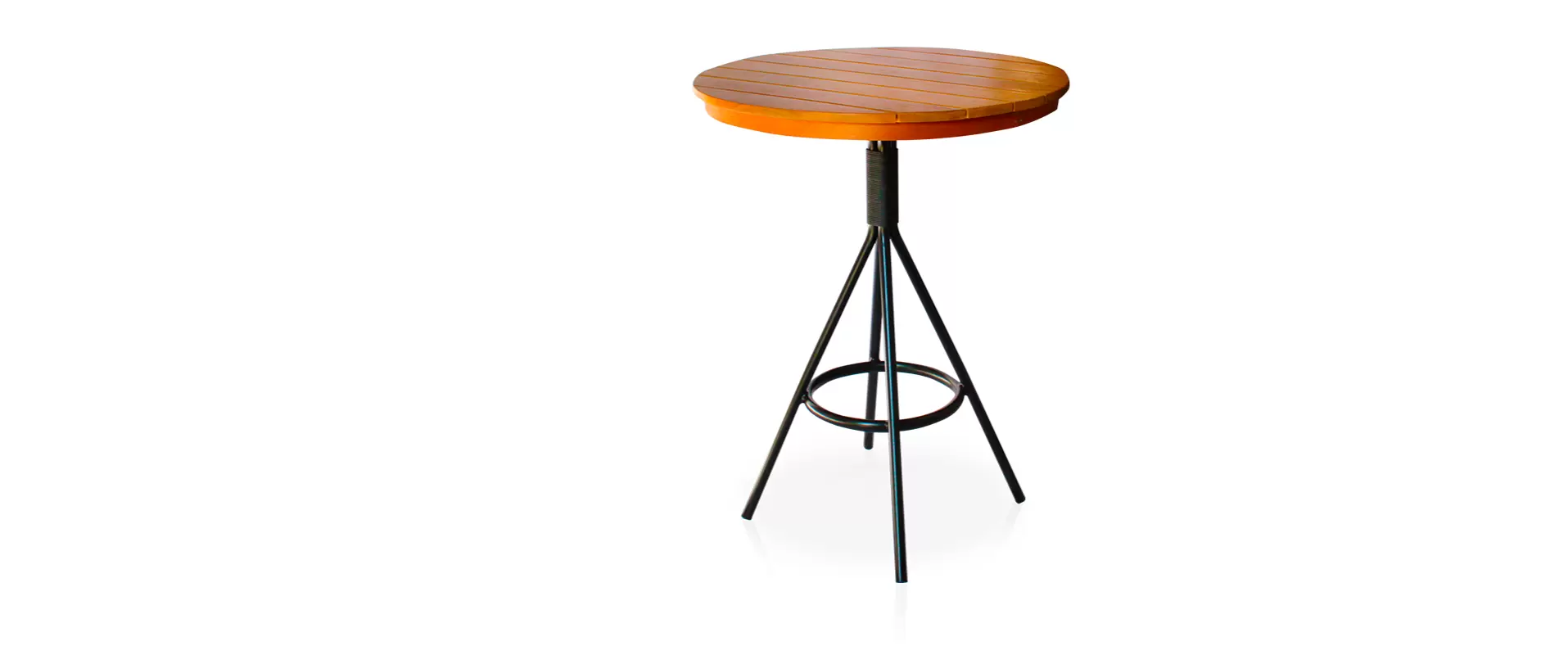 A estrutura em alumínio, leve e resistente, garante durabilidade e um design moderno. O tampo em madeira cumaru, com seu veios marcantes e textura rica, confere à peça um toque de rusticidade e elegância, enquanto o detalhe em corda náutica abaixo do tampo adiciona um toque náutico e artesanal.
