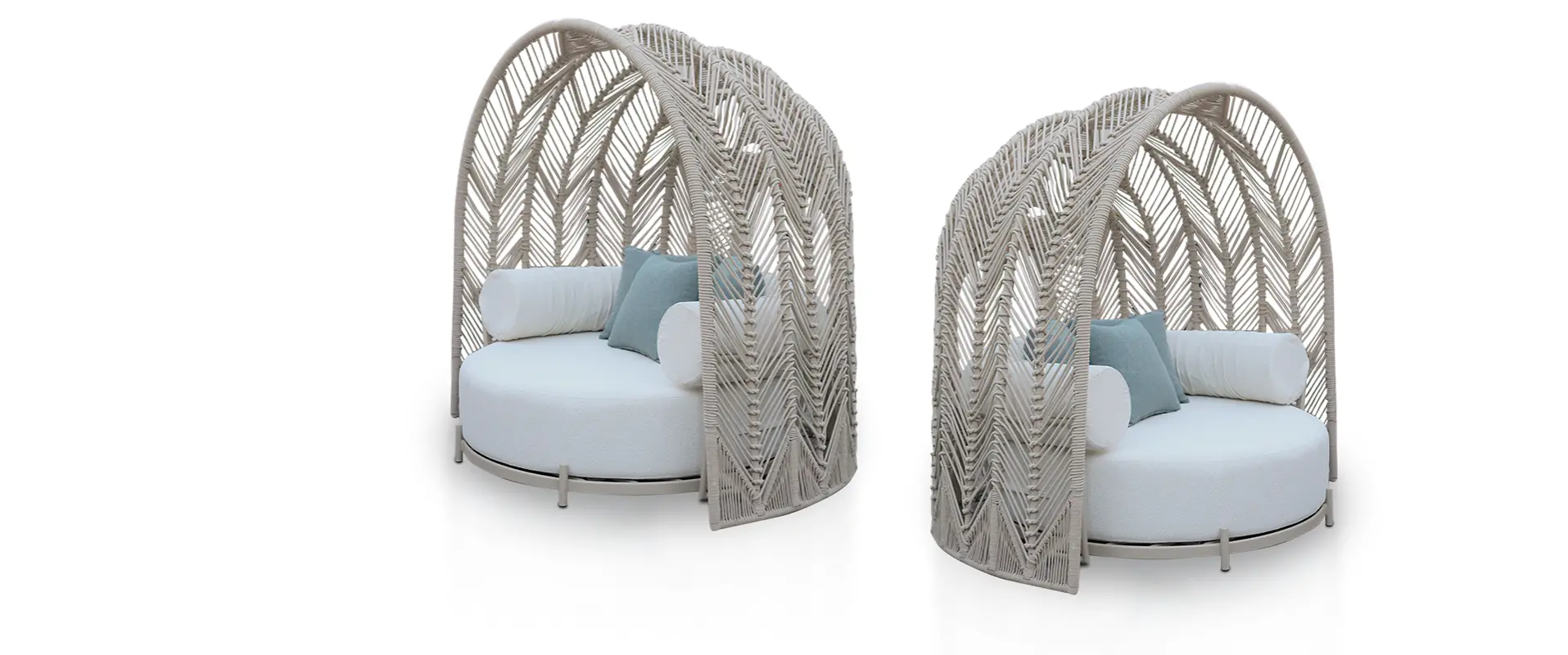 SOLICITE ORÇAMENTOA Chaise Redonda com Cúpula Tramado em Corda Náutica foi desenvolvida para transformar áreas externas em verdadeiros refúgios de conforto e elegância.