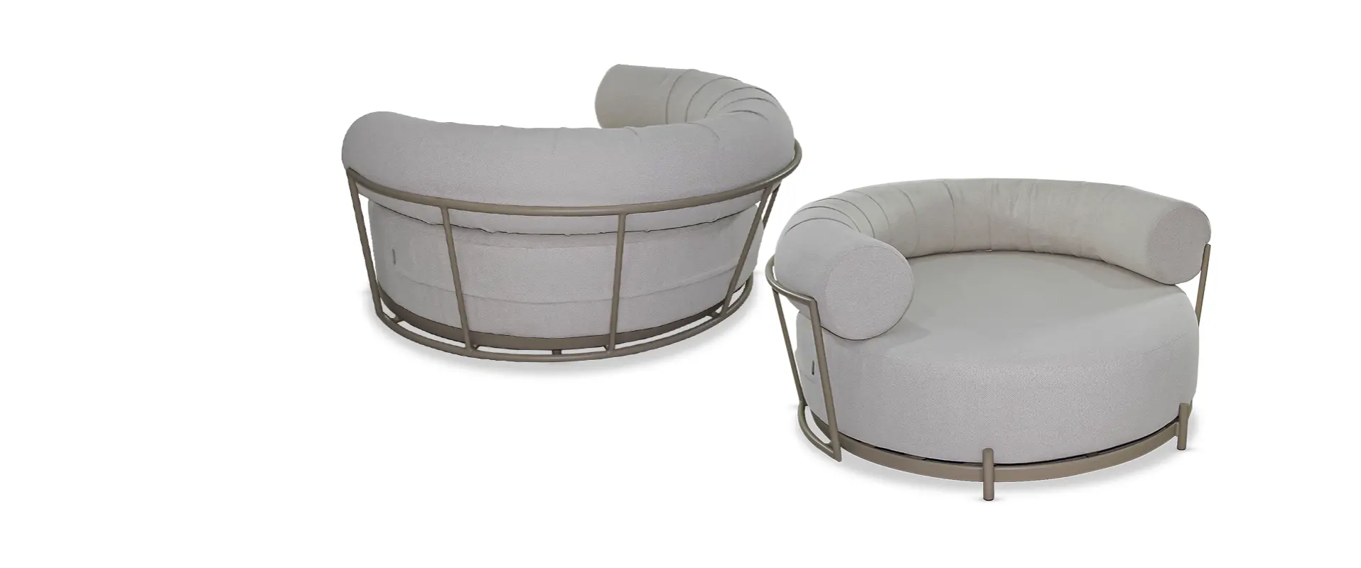 Indicada para varandas, áreas gourmet, piscinas e espaços de alto padrão, a chaise oferece excelente resistência às intempéries, aliando durabilidade e estética contemporânea. Seu formato redondo convida ao relaxamento e cria um ponto focal marcante na decoração.