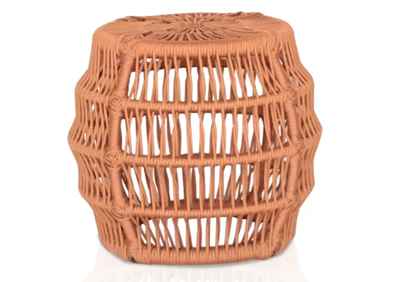 Com estrutura em alumínio resistente e leve, ele suporta um tampo em madeira ripada que adiciona um toque de sofisticação natural. O revestimento em corda náutica ou fibra sintética, disponível em diversas cores, permite personalizar a peça de acordo com seu estilo e ambiente.